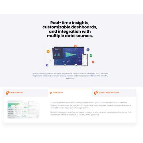 Customizable Recruitment Metric Dashboards give hiring teams real-time visibility into performance metrics, allowing users to track KPIs such as pipeline activity, time-to-fill, source effectiveness, and team productivity — all in a fully configurable, user-friendly interface.